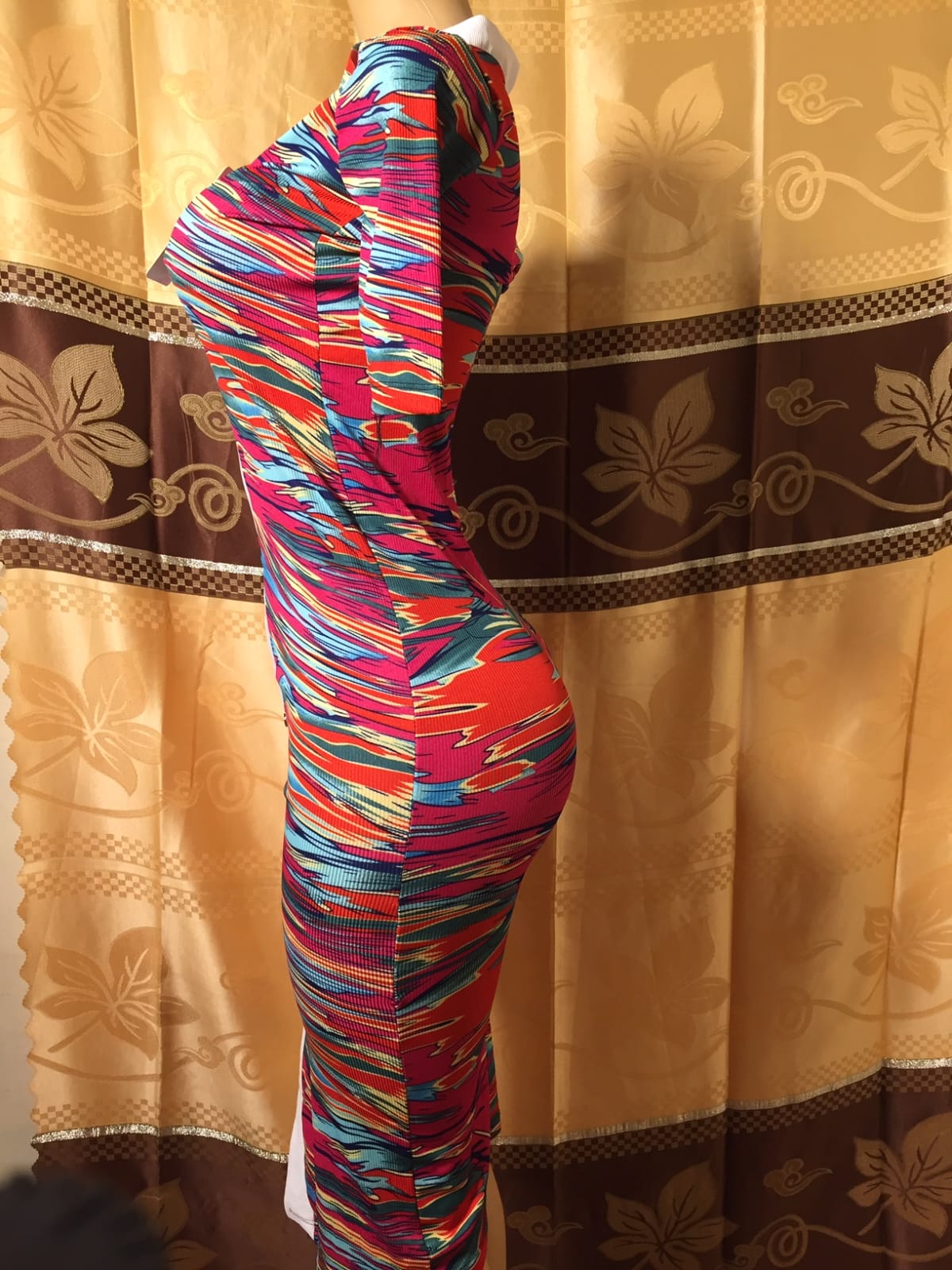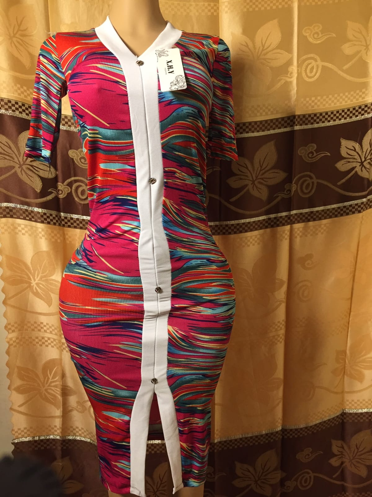 1pc Women’S Tropical Print Knit Dress, V-Neck, Fitted, Polyester, Casual Style, All Seasons, Adult